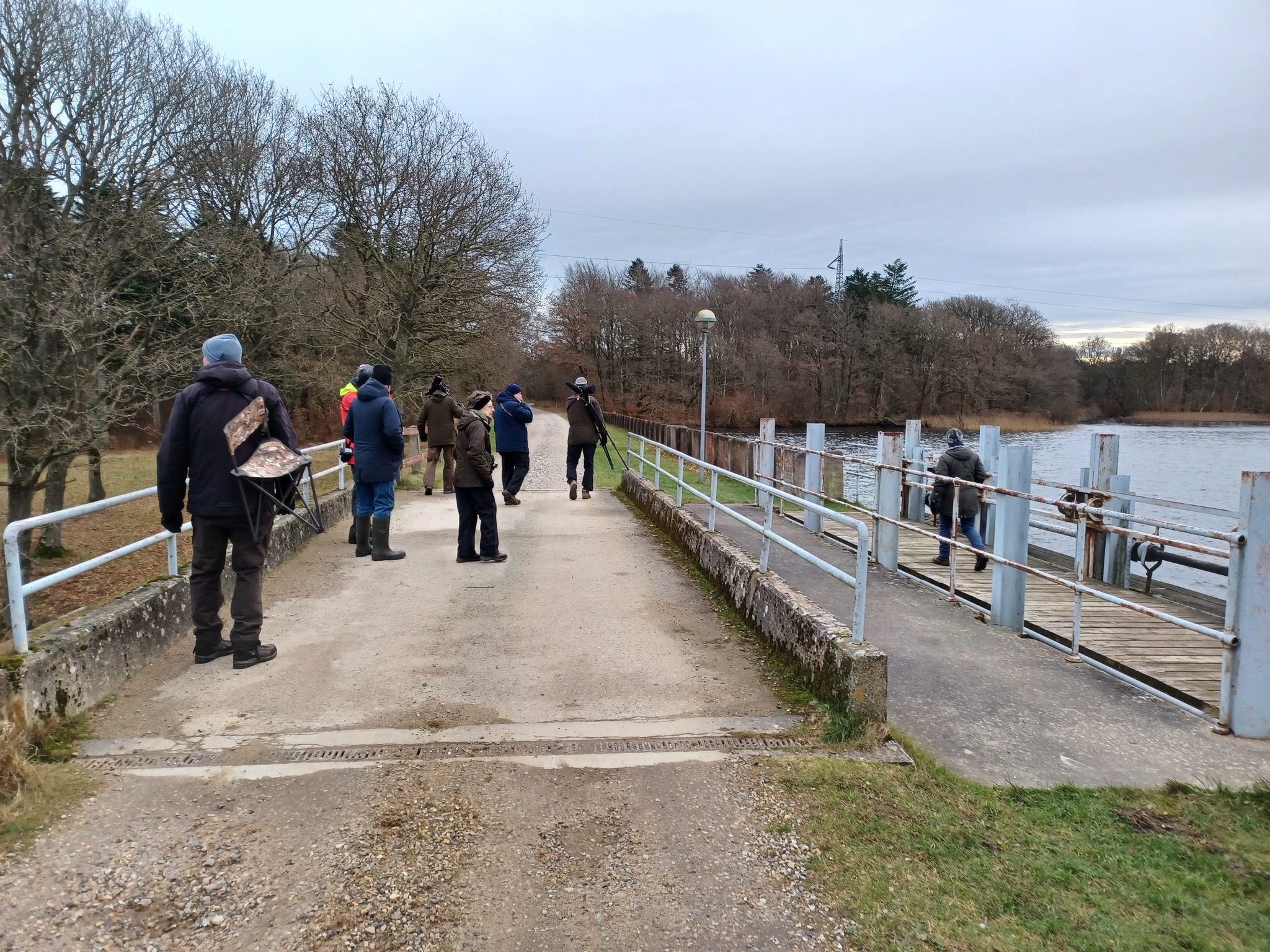 Der blev lokket med isfugl, vandstær og bjergvipstjert, men de 9 deltagere på turen fandt ikke nogen ved Energimuseet. Heldigvis var der en del vandfugle på Tange Sø at se fra dæmningen bag Energimuseet. Blishøne og troldand var der en hel del af, men også hvinand, knopsvane og pibeand. Stor skallesluger er altid værd at se på og et klart hit var den voksne havørn, som satte sig i et træ ved byen Tange og skræmte en del ænder på vingerne.